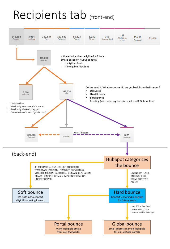 HubSpot sends emails on your behalf, and if the email bounces (can not be delivered) HubSpot receives the bounceback message. Email servers explain why the email bounced within the bounce message. The server response is often overlooked by the untrained eye. However, HubSpot has a framework for categorizing these bounce messages.